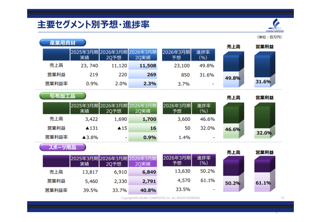 3点目は、産業用資材セグメントと引布セグメントにおける、業績改善に向けた当社の取り組みの成果が出始めている点です。